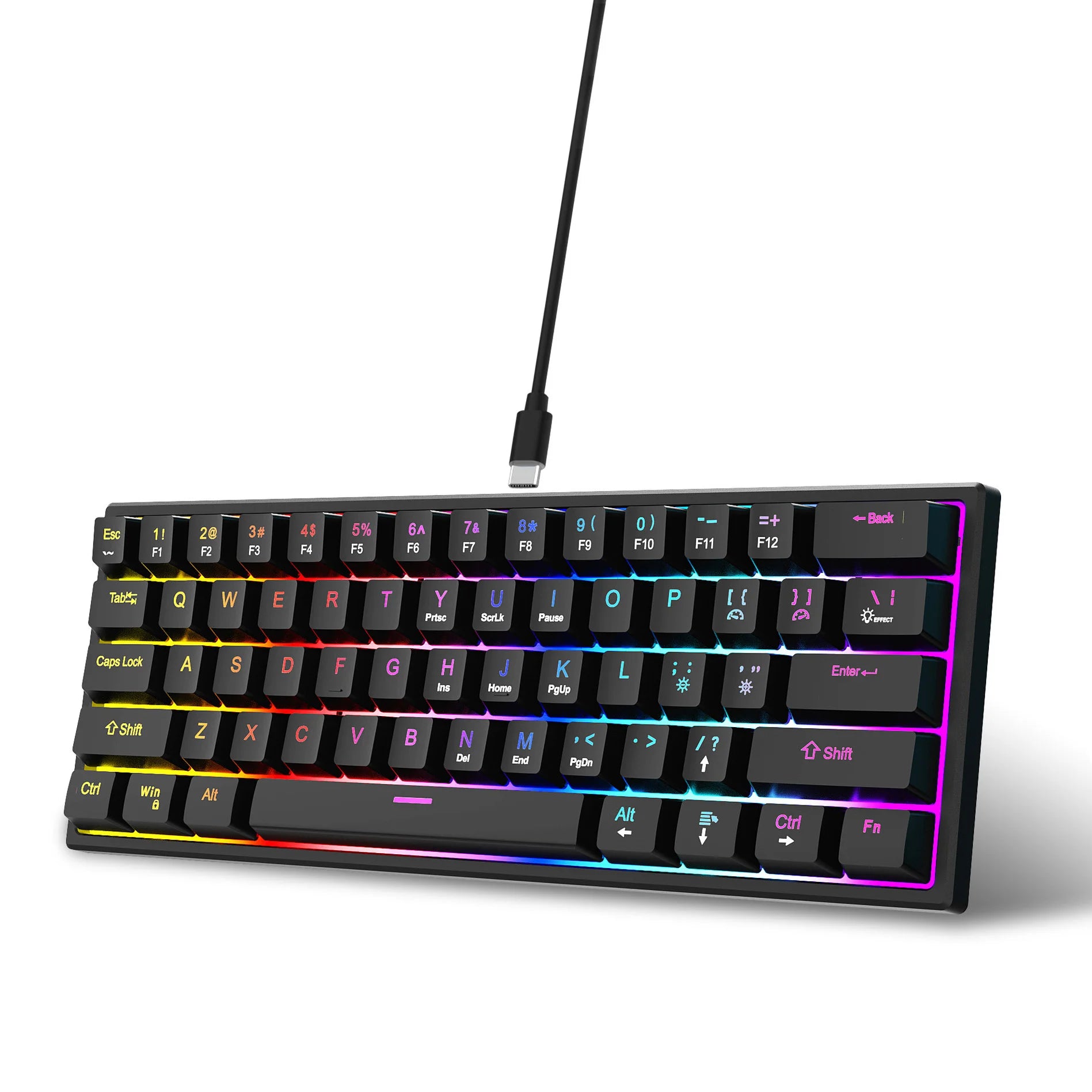 61 Keys Mechanical Keyboard Wired Gaming Keyboard for Laptop Desktop Ergonomics RGB Backlit Cyan Axis Keycaps PC Accessories