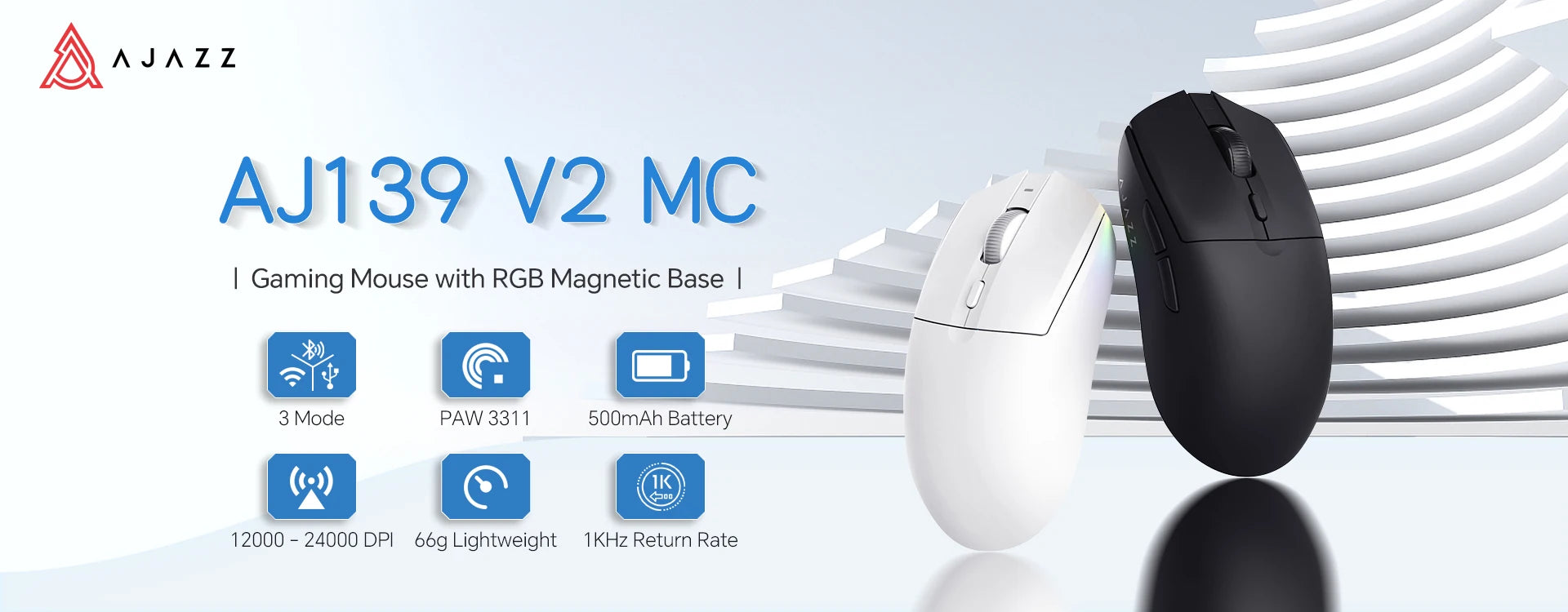 AJAZZ AJ179 PRO PAW3395 Wireless Gaming Mouse with RGB Charging Base 26000DPI Lightweight Ergonomic Mouse for PC Gamer Laptop