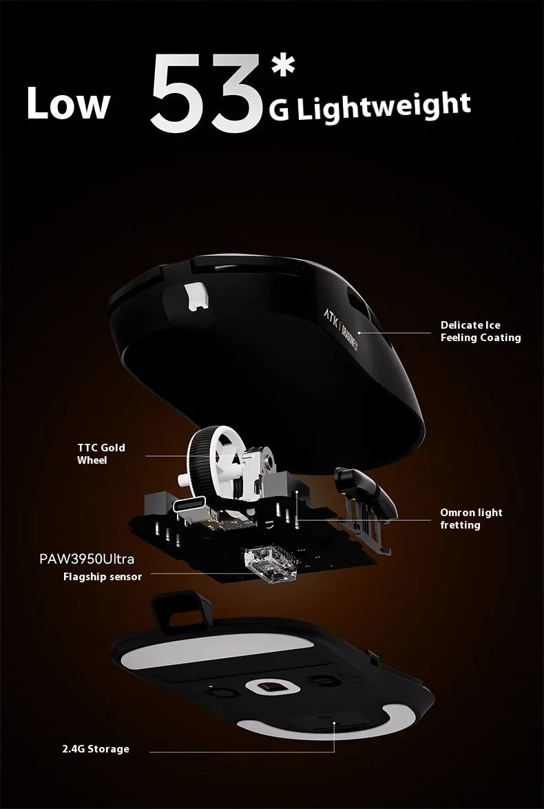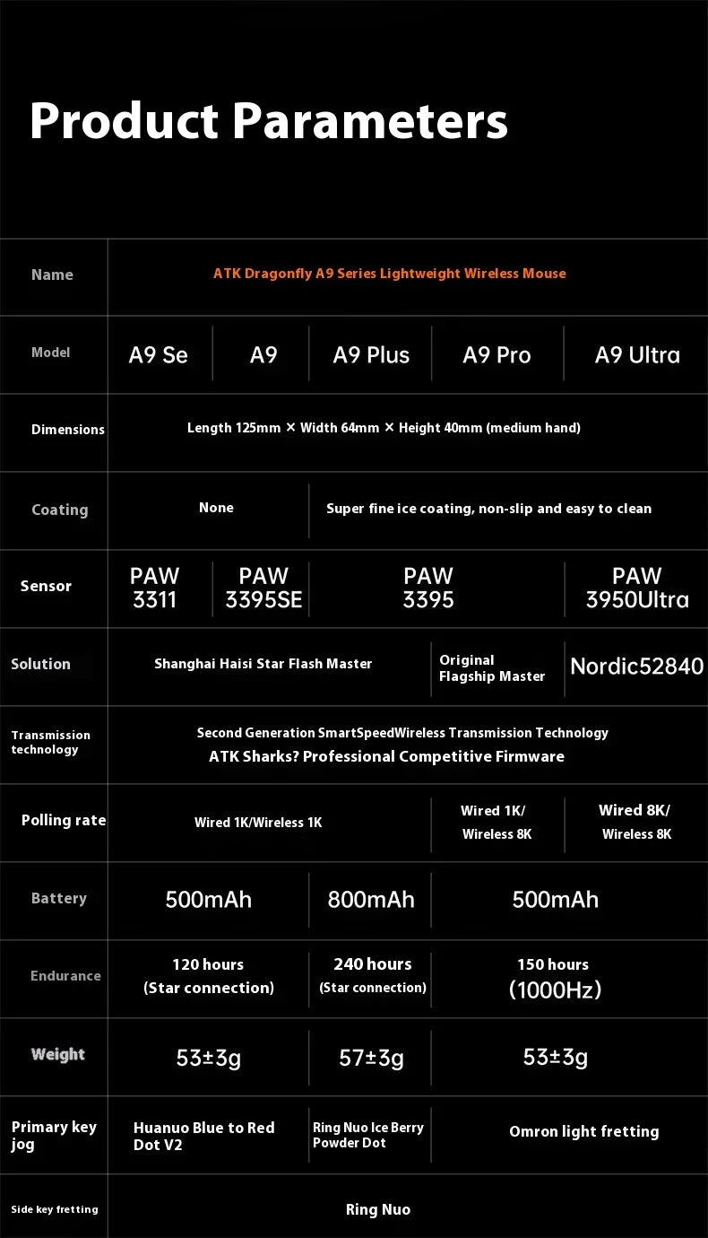 ATK Dragonfly A9 Ultra Mouse Paw3950 2 Modes Wireless Mouse 8000Hz Lightweight Gaming Mice PC Accessories For FPS Gamer Custom