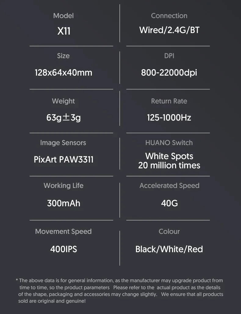 Sensor model: Pixart 3395 (26000 DPI|650 IPS|50G)