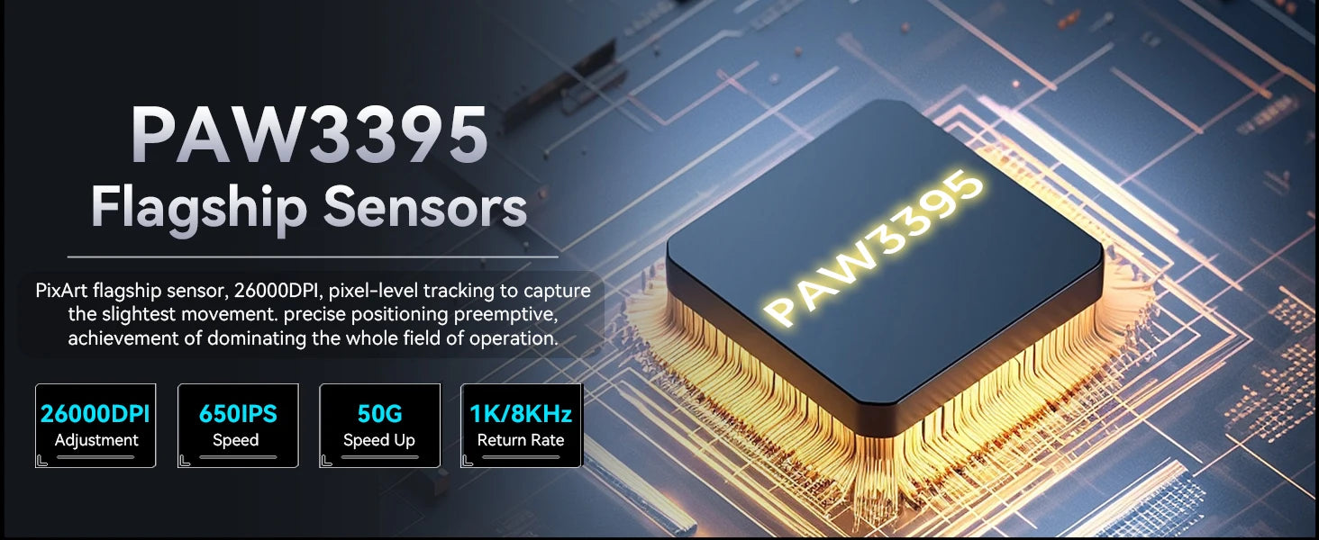 Sensor model: Pixart 3395 (26000 DPI|650 IPS|50G)