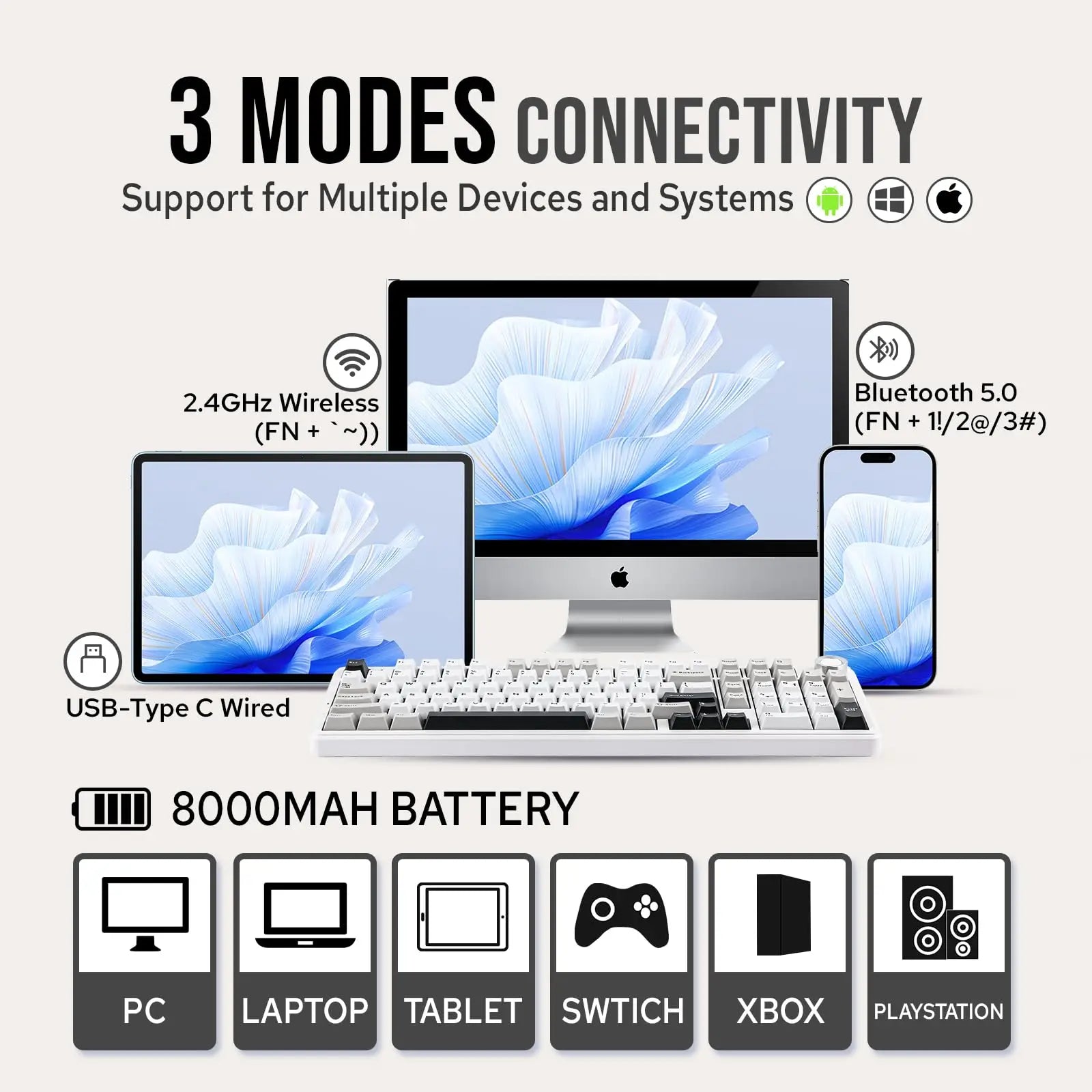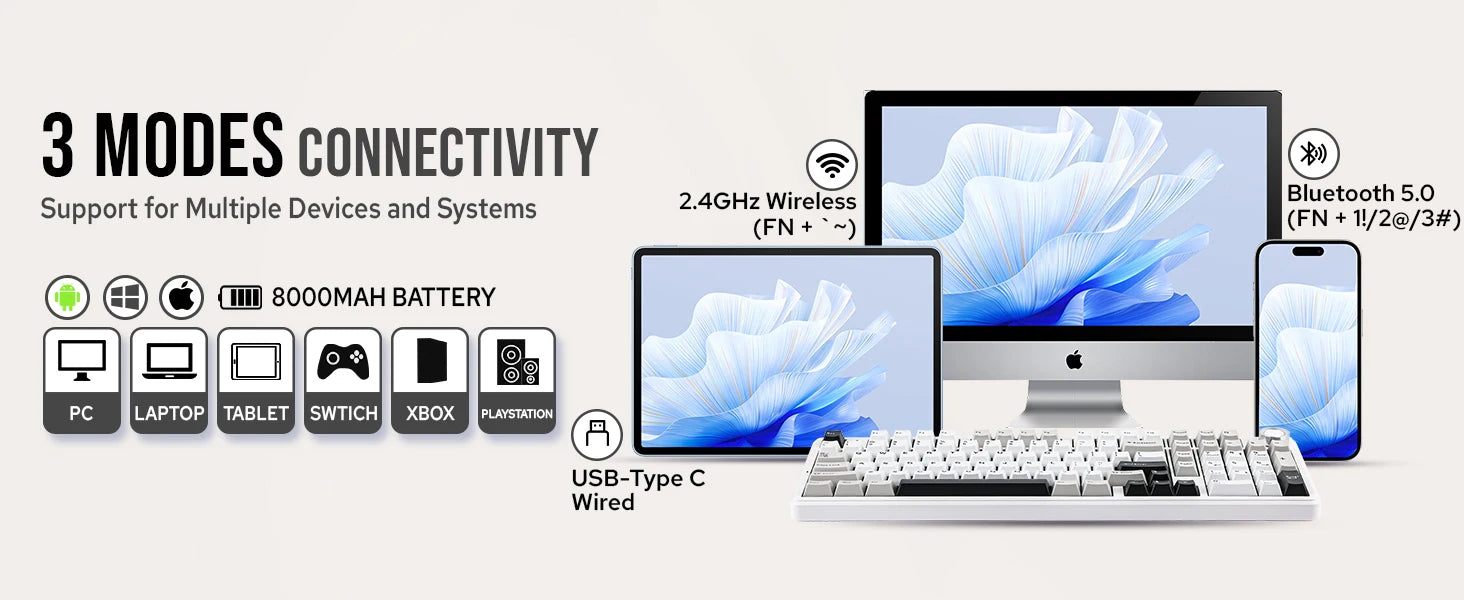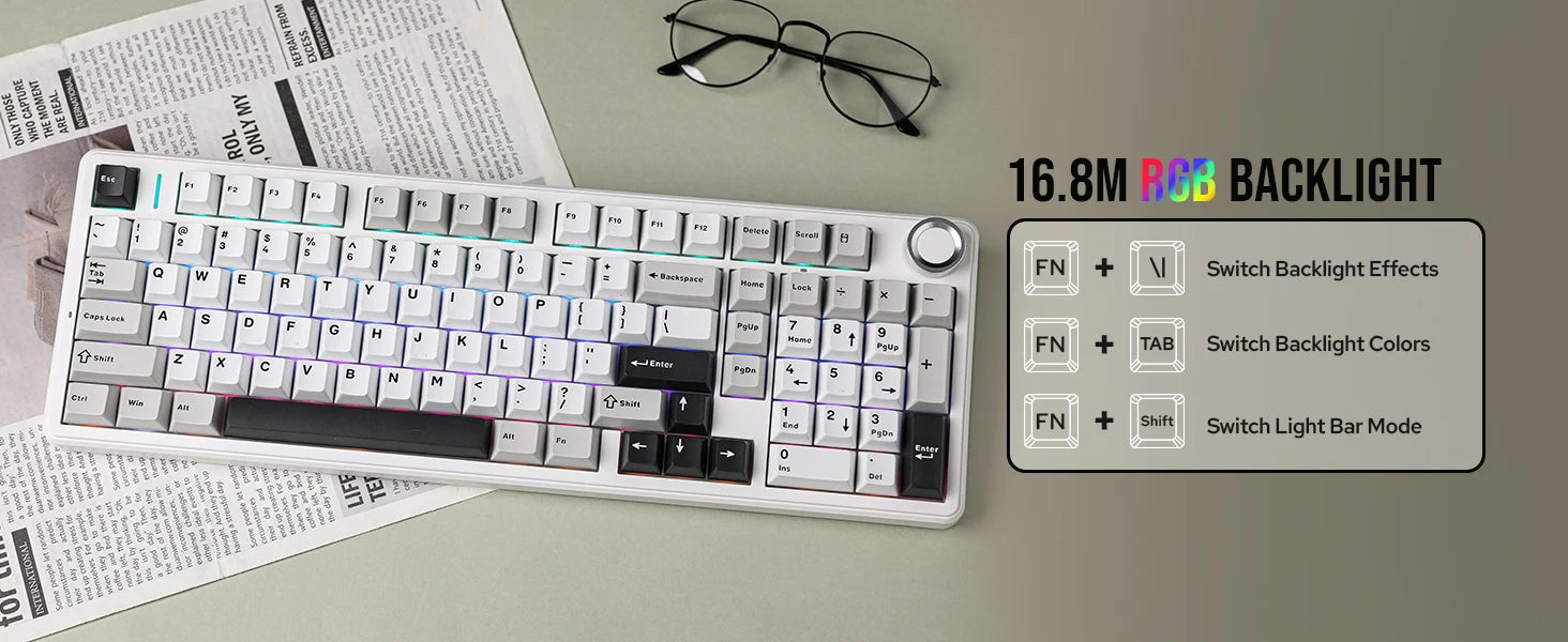 Aula F99 PRO 96% Mechanical Gaming Keyboard BT5.0/USB-C/2.4G Wireless Hot Swappable Gasket Custom Keyboard With 8000mAH Battery