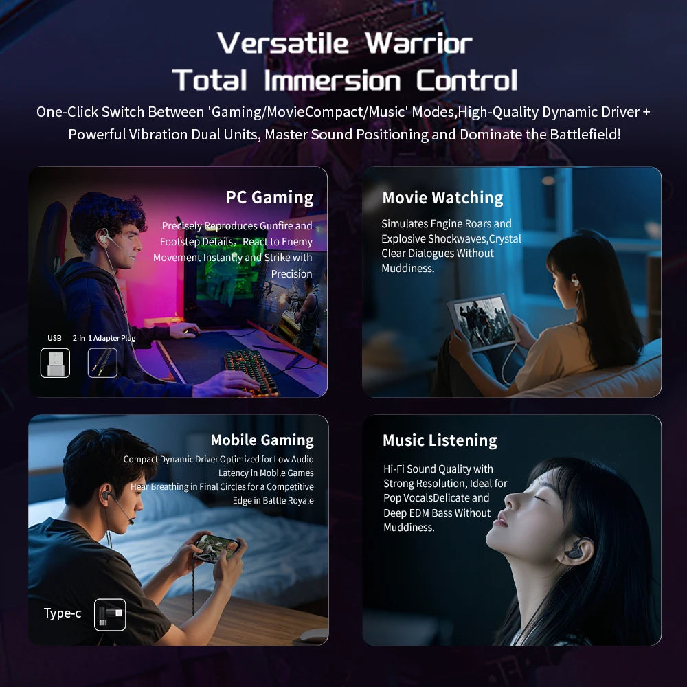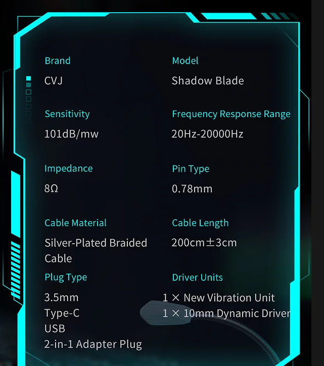 CVJ Shadow Blade In Ear Earphones 1DD+1 Vibration Switch Adjustable Gaming ports in-ear typec Hifi Headphones konoka Mermaid2