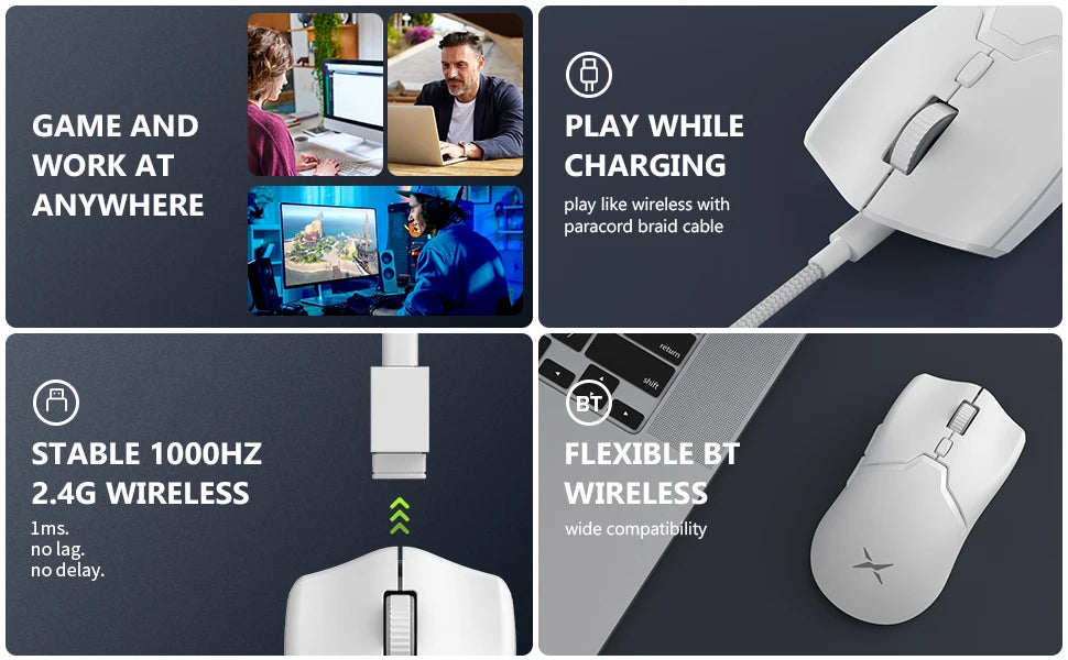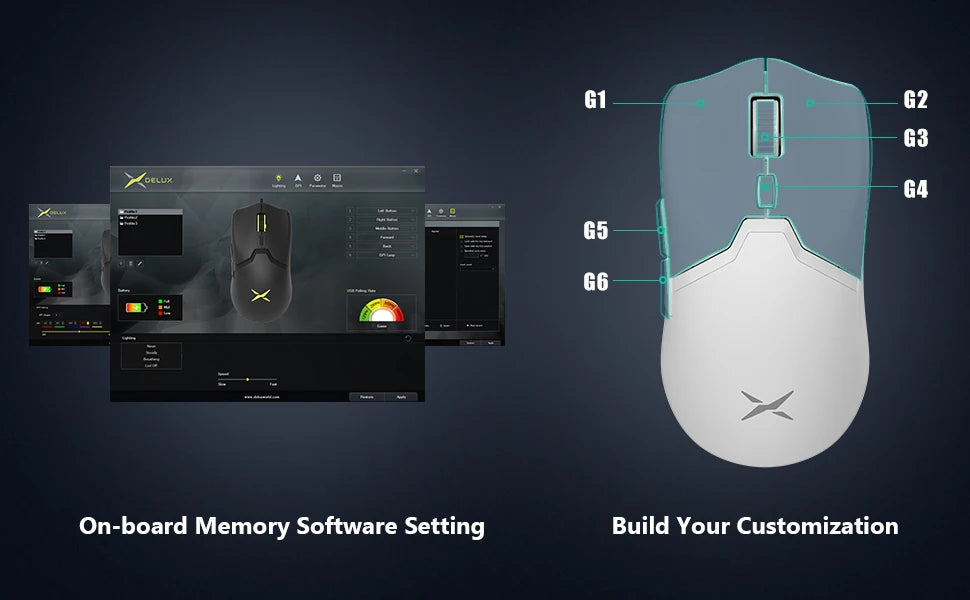 Delux M800PRO PAW3395 Wireless Gaming Mouse RGB light 26000DPI Wired Programmable Rechargeable Mice for PC Laptop Gamer