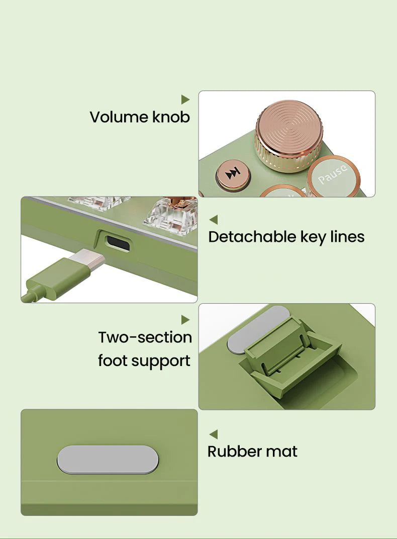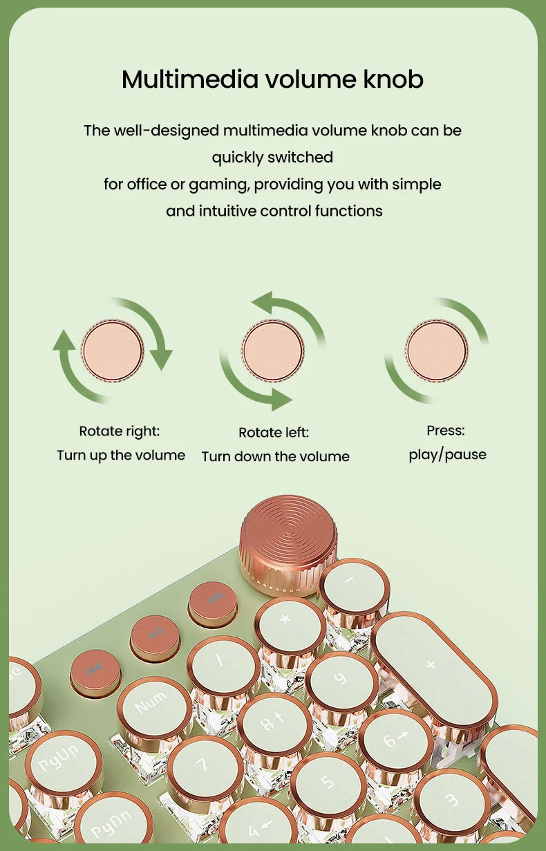 EWEADN V20 Punk Typewriter Mechanical Gaming Keyboard, 104 Keys Round Keycaps LED White Backlit, Key-wire separation design