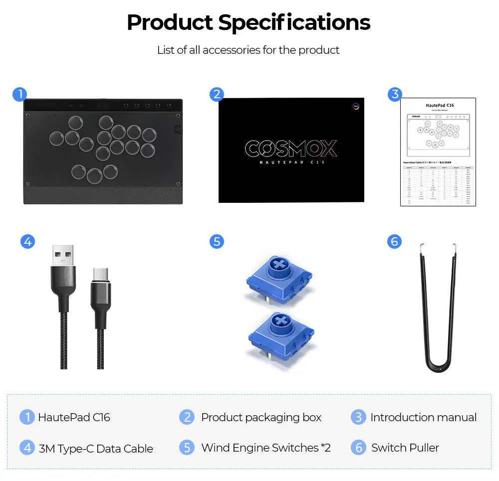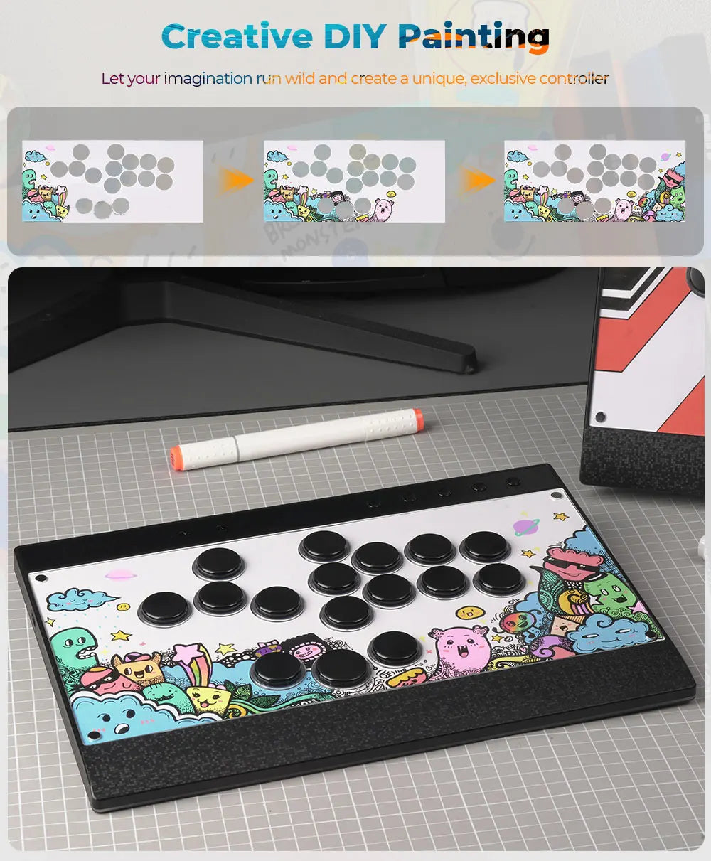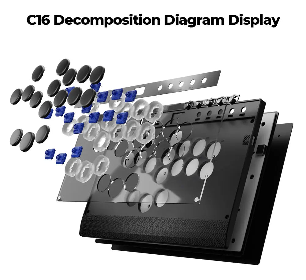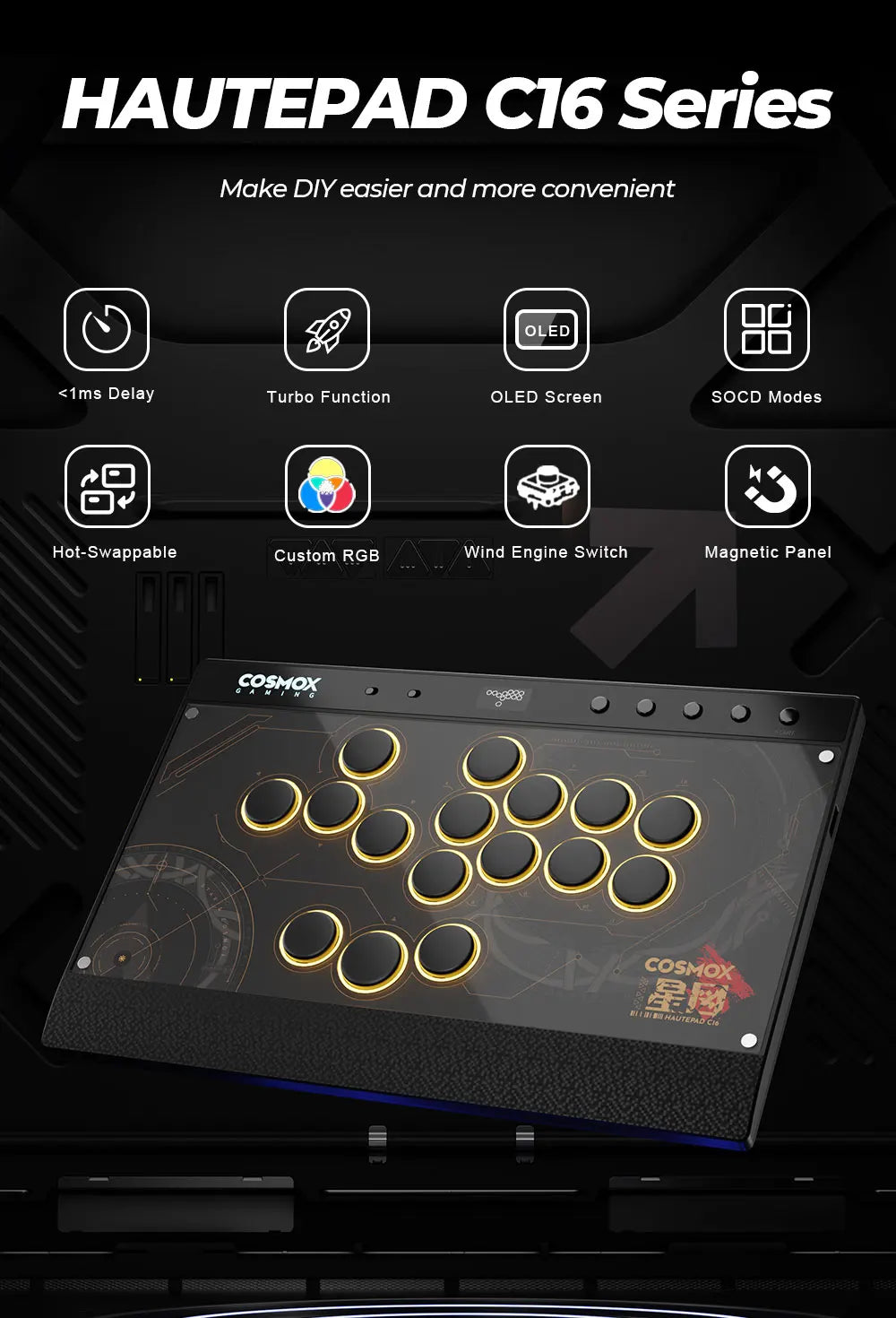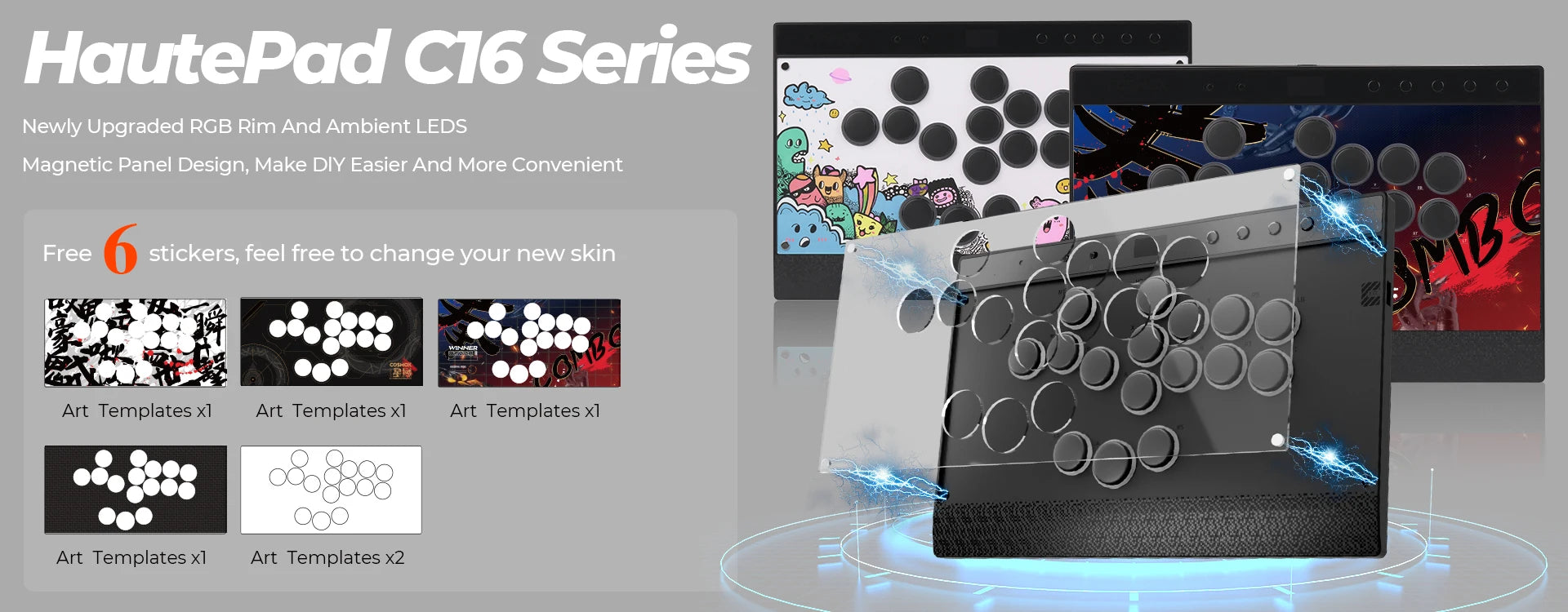Haute42 C16 Magnetic Hitbox Leverless Arcade Stick Controller For Ps4 /PS5/Switch Button Rim Stickless Hitbox Fightstick