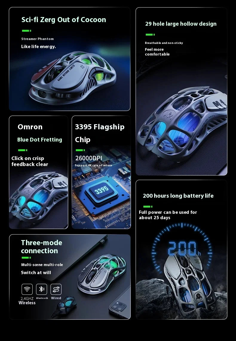 In Stock Gravastar Genuine M1 Gamer Mouse Magnesium Alloy Wireless Bluetooth Mouse 8k Receiver Rgb Low Latency Gaming Mice