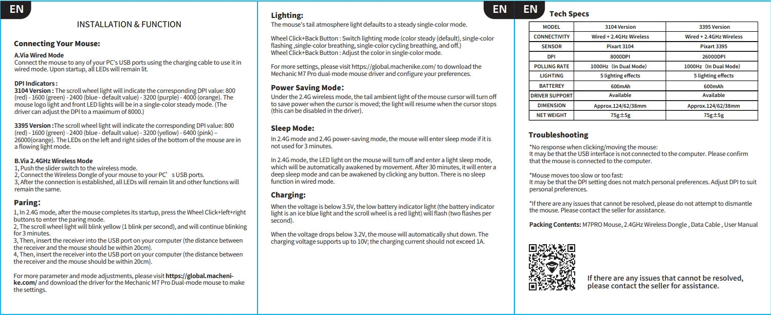 Machenike M7 Pro Gaming Mouse USB Wired 2.4GHz Wireless Mouse PAW3395 26000DPI 650IPS 7 Button 74g RGB For Laptop PC Mouse Gamer