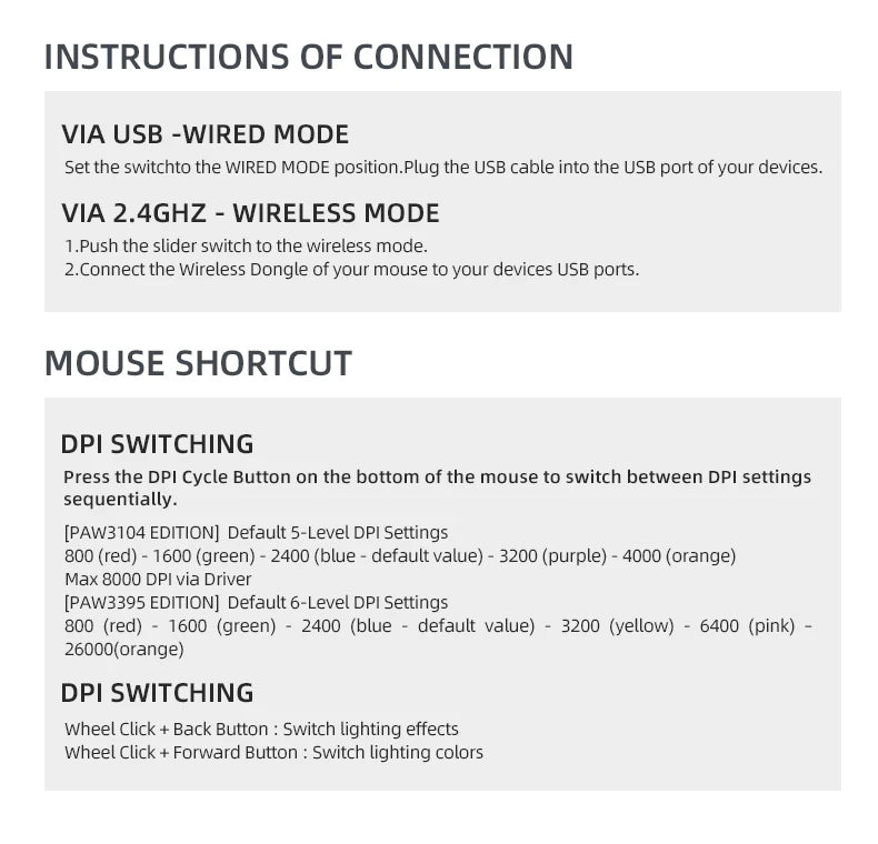 Sensor model: Pixart 3395 (26000 DPI|650 IPS|50G)