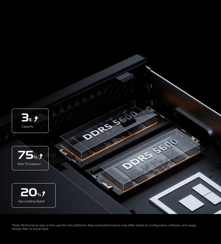 Memory: Up to 96GB DDR5 (SO-DIMM x2)