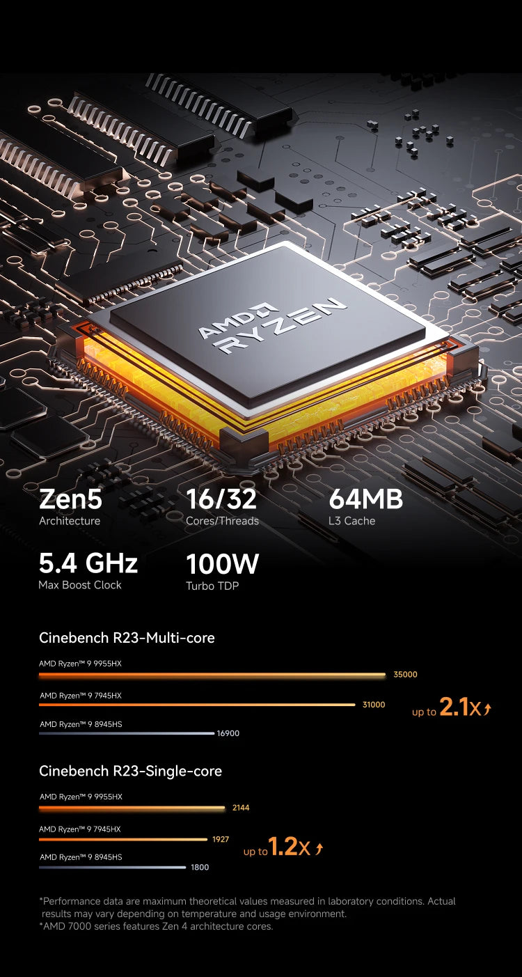 CPU: AMD Ryzen 9 9955HX(16 Cores/32 Threads,Zen 5,Max 5.4GHz),AMD Ryzen 7 7945HX(16 Cores/32 Threads,Zen 4,Max 5.4GHz)