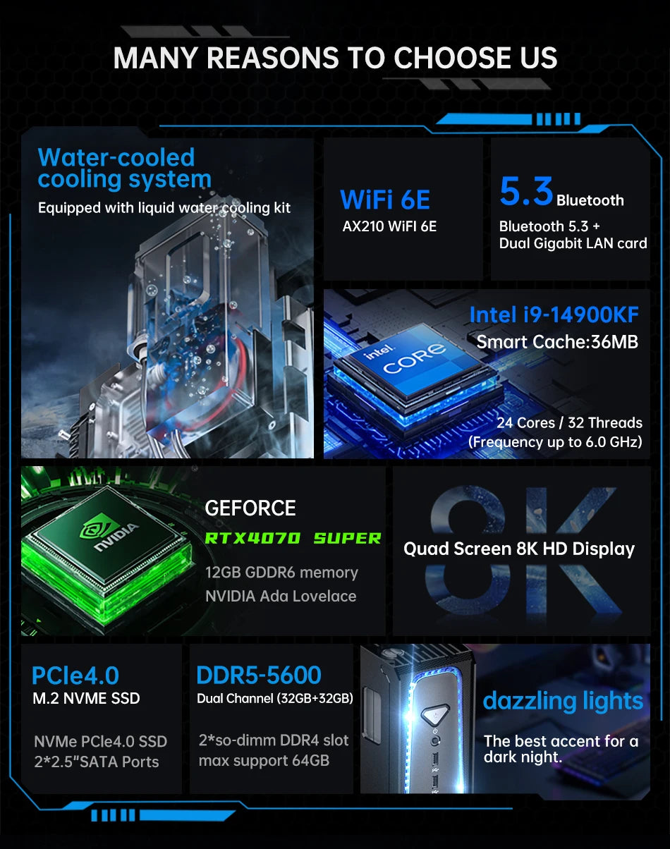 MSECORE SL800 Liquid cooled computer Gaming PC Intel Core I5 I7 I9 RTX4070 12G Windows 11 DDR5 NVMe SSD Desktop Gaming PC