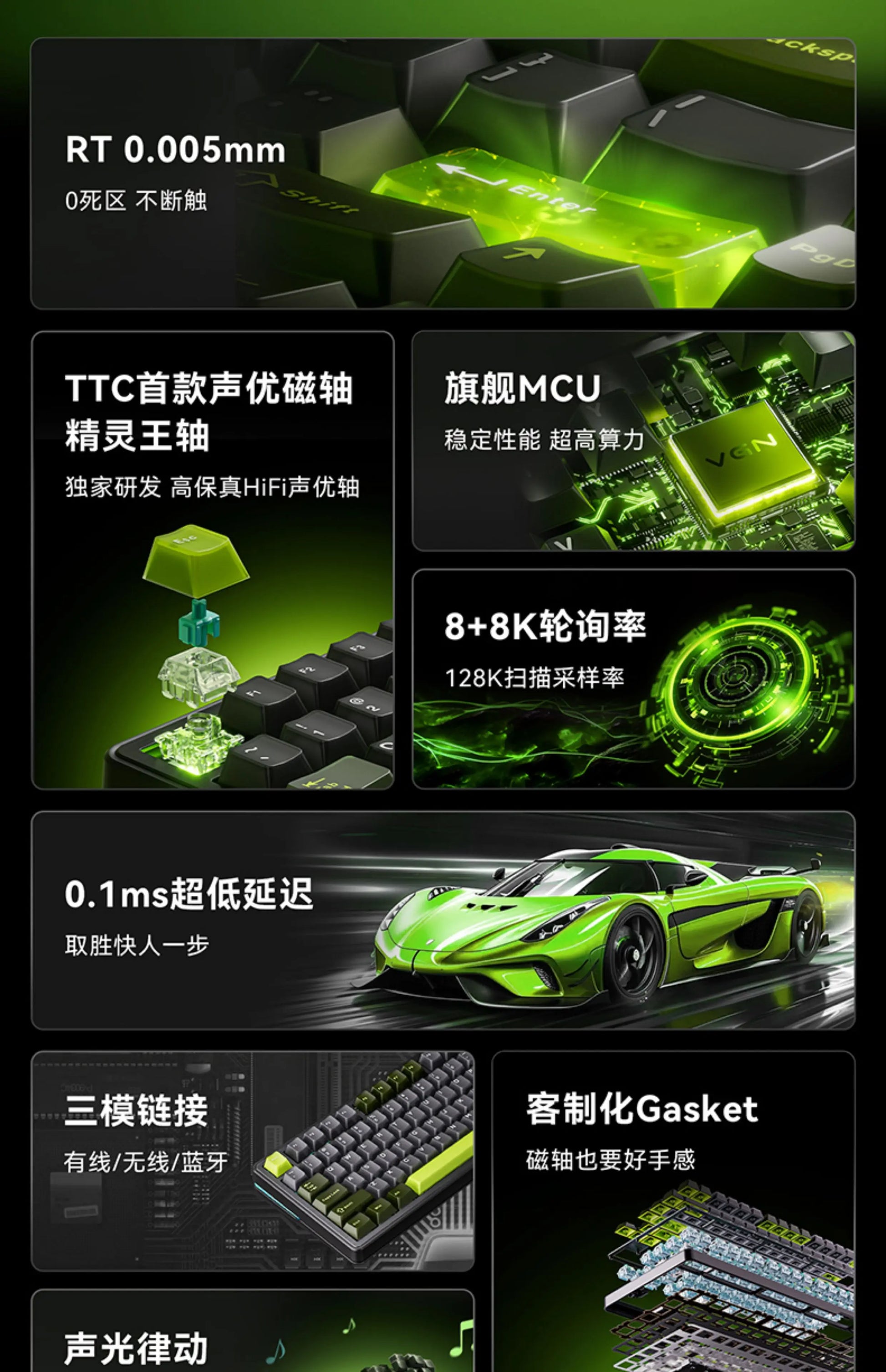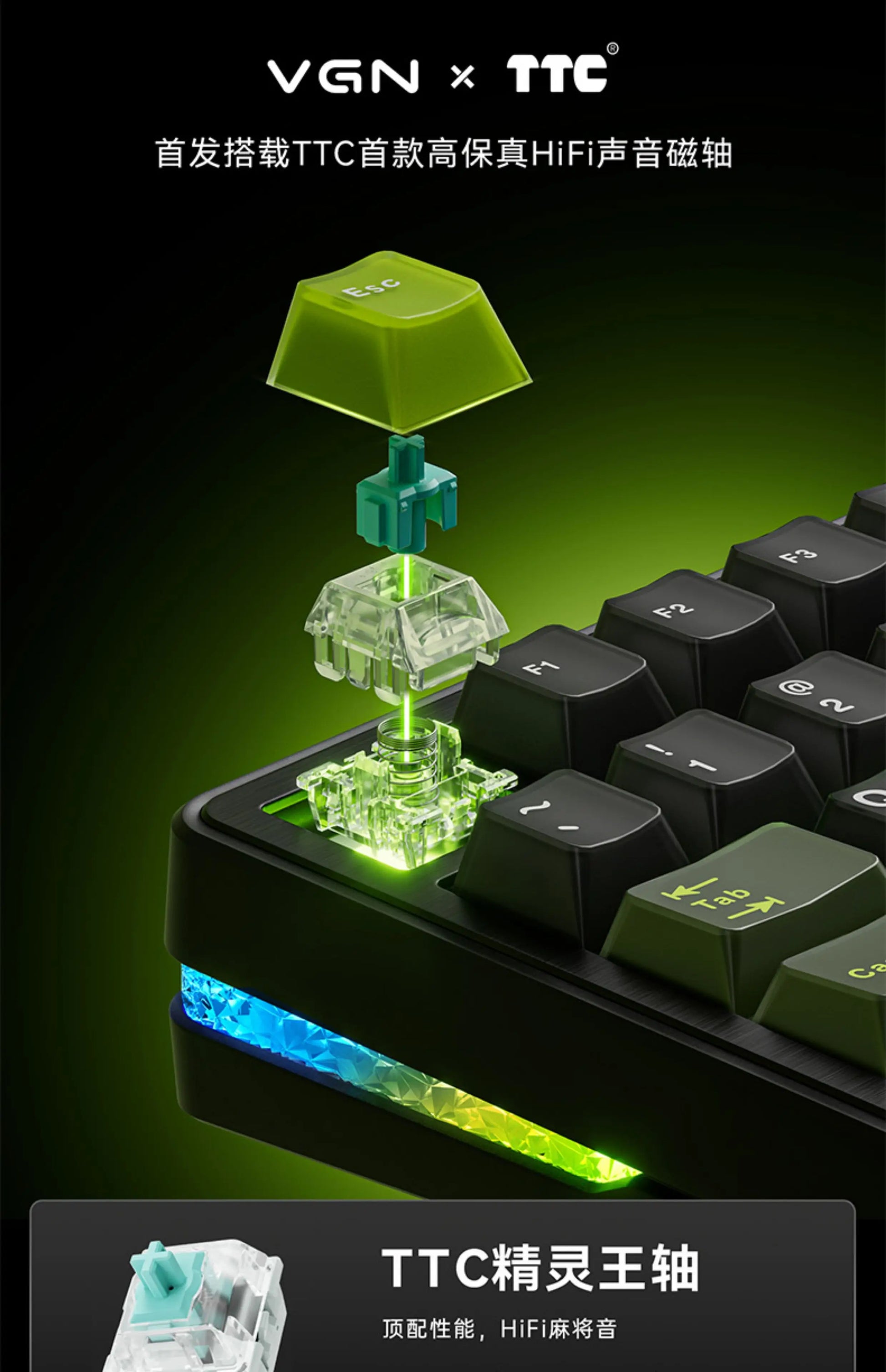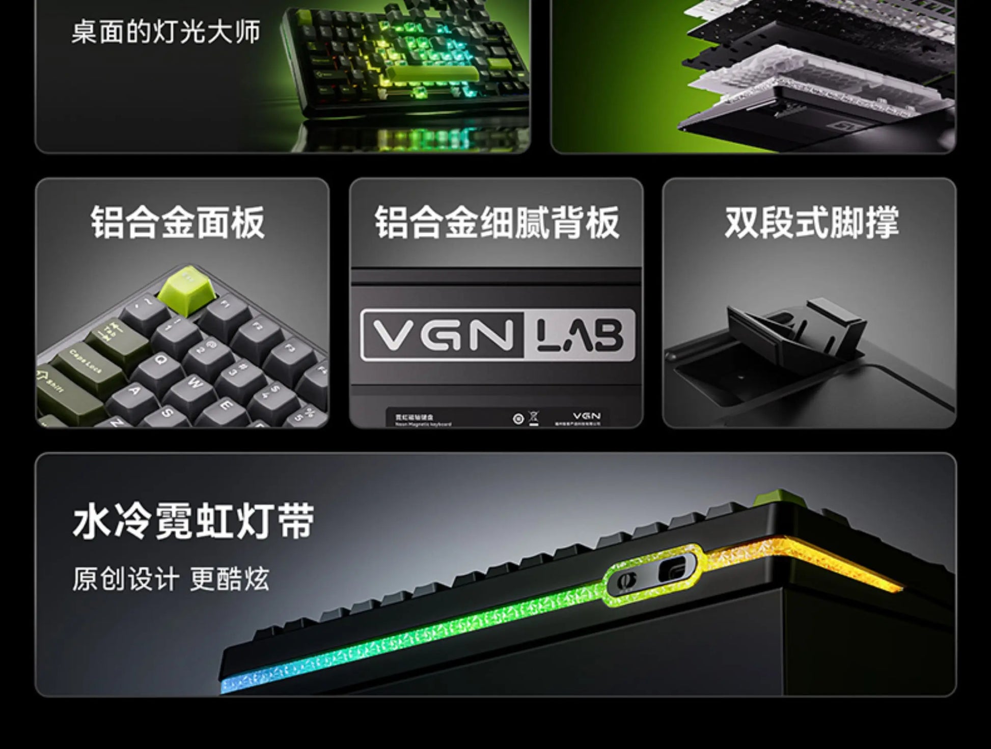 New VGN Ultra Pro He Neon Series Three-Mode Wireless Bluetooth Magnetic Axis Gaming Gasket Hot-Swappable Rgb Mechanical Keyboar