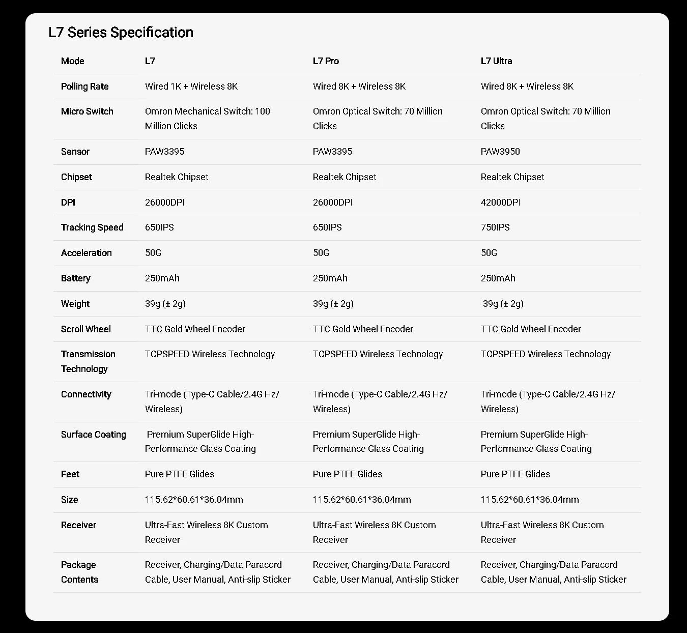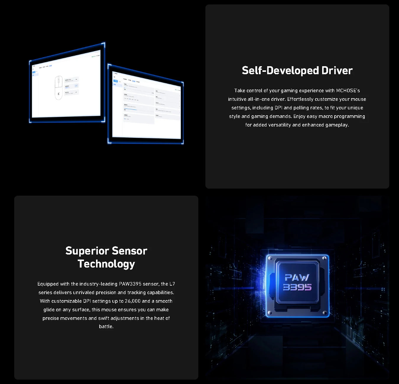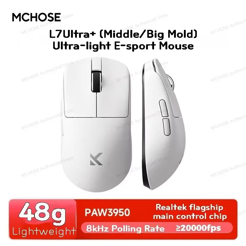 Official MCHOSE L7 Ultra Wireless Gaming Mouse PAW3950 E-Sport Sensor Realtek Flagship Master TOPSPEED 8K Polling Rate 39g Mice