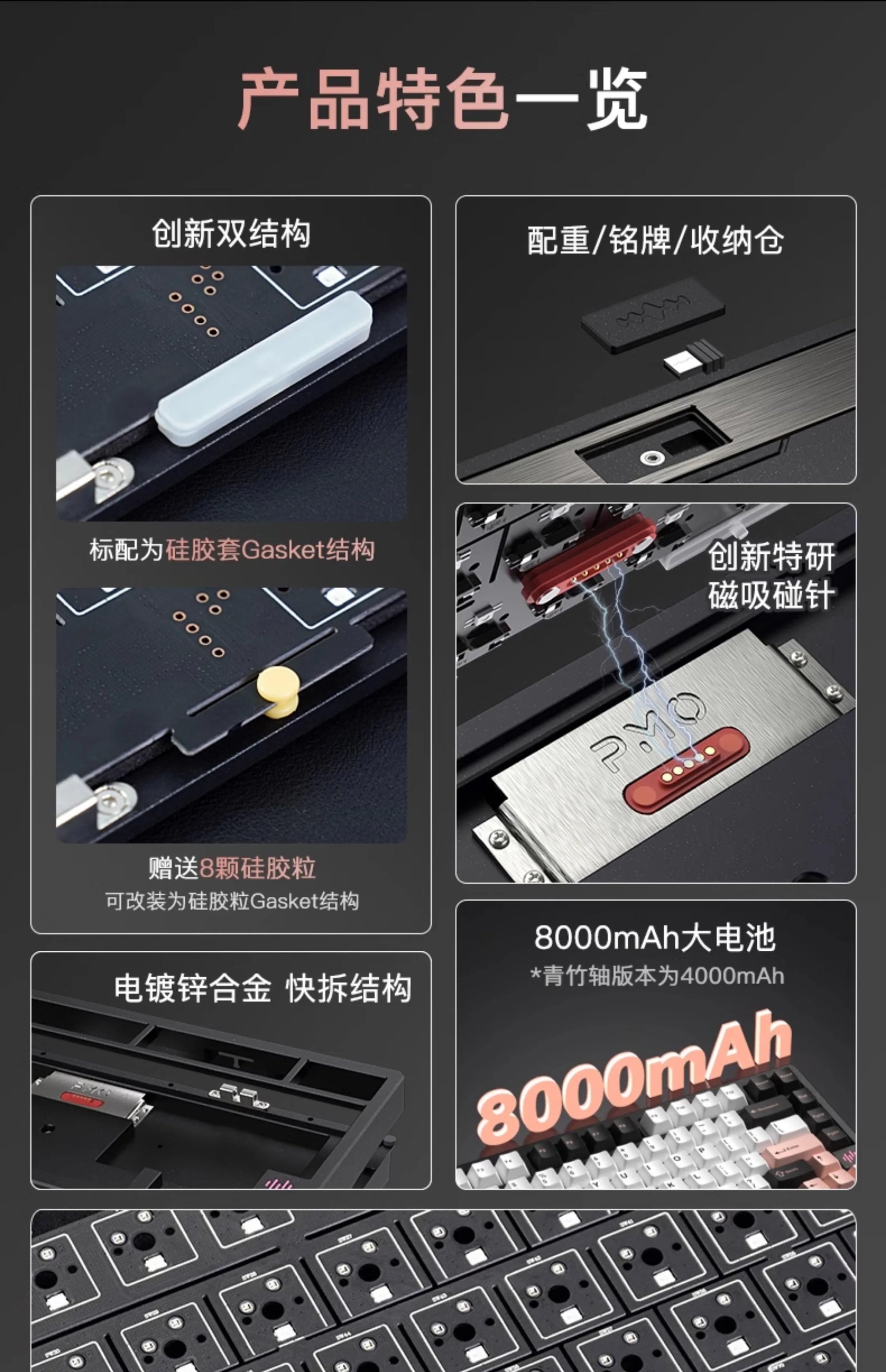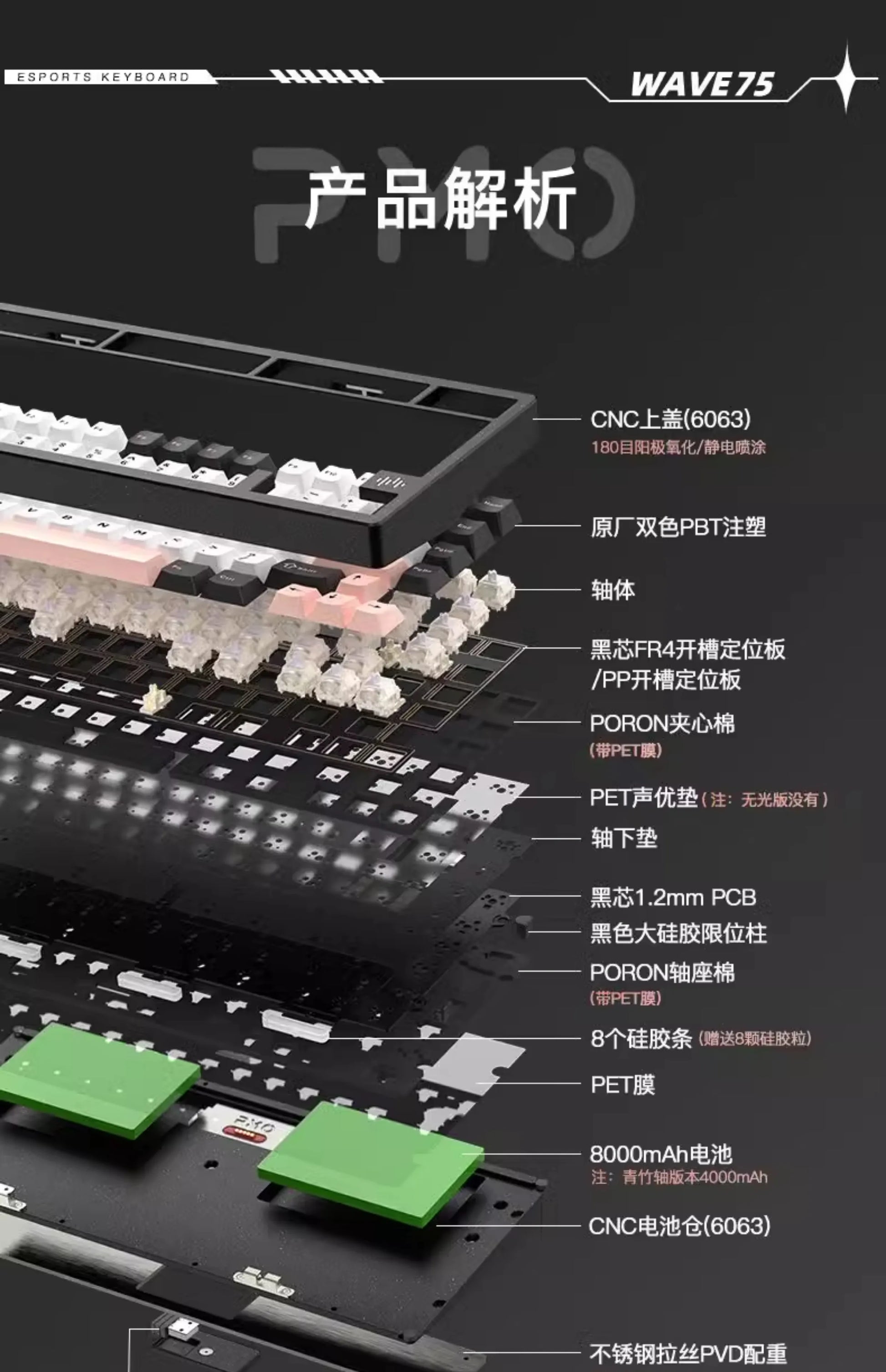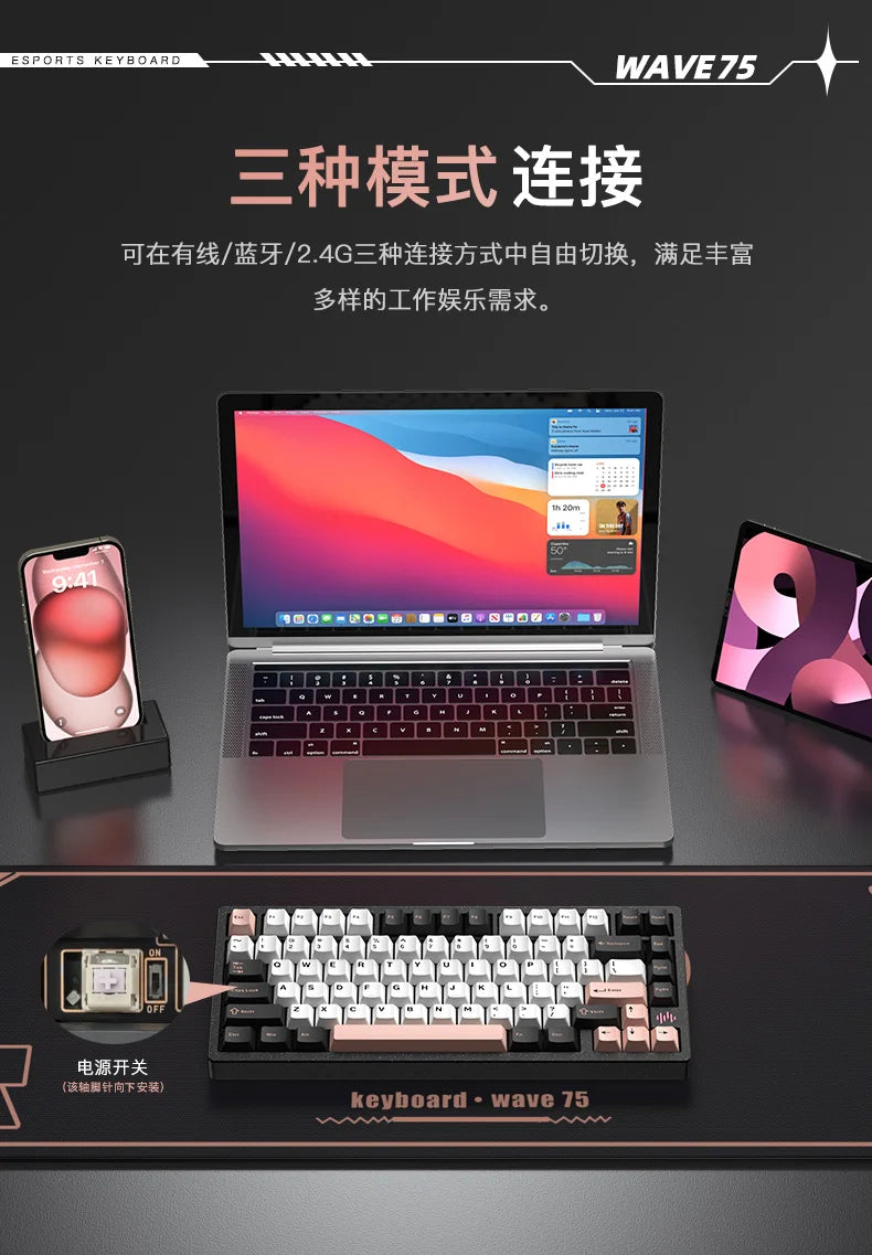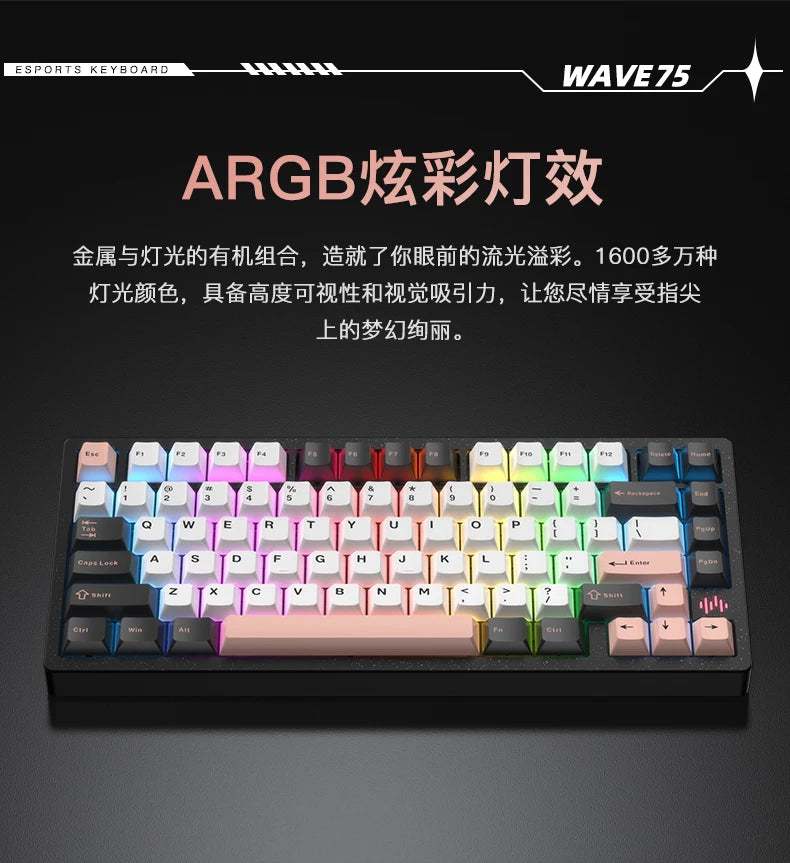 PMO WAVE75 Mechanical Gamer Keyboard RGB Customize Wireless USB/2.4G/Bluetooth 3Mode CNC Esports Gaming Keyboard Office Gifts