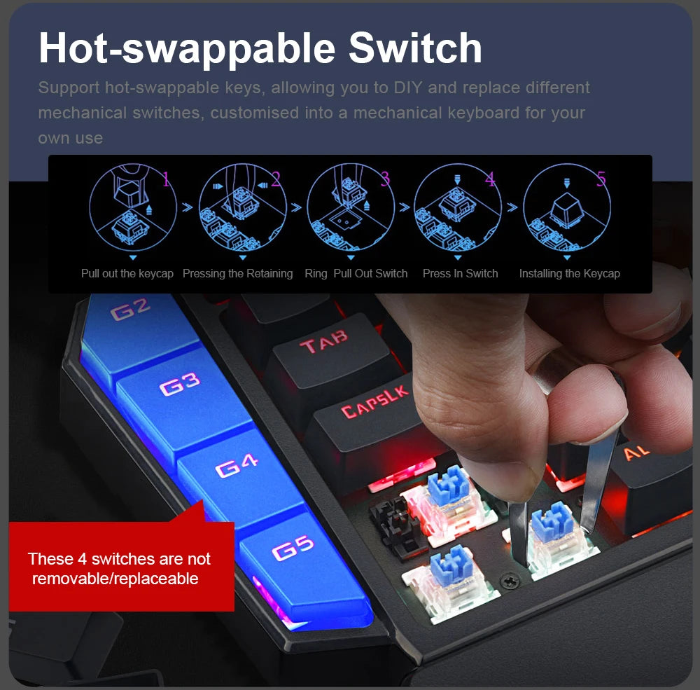 REDRAGON DITI K585 RGB 42 Key One-handed USB Mechanical Gaming Wired Keyboard Blue Switch 42 Keys Gamer for Computer PC Laptop